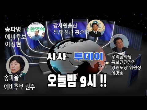 시사투데이 오늘의 이슈 : 우리공화당 자유통일당 합당을 어떻게 생각하십니까?/ 출연진 (홍순범 최혜림) 사회(이명호) |