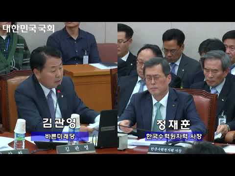 [국정감사] (종합감사) 김관영 위원바른미래당 질의 성윤모 장관산업통상자원부 답변 정재훈 사장한국수력원자력 답변 10.18 |