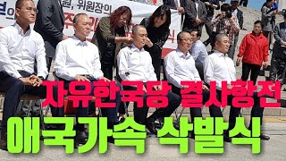단체삭발, 자유한국당 패스트트랙 날치기 결사항전 대한민국 청아대 |